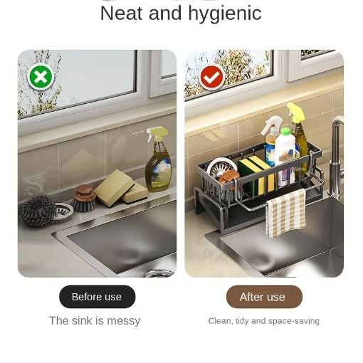 - Ideal for compact kitchens, this storage rack fits perfectly near the sink without taking up excess space, improving kitchen organization and aesthetics.