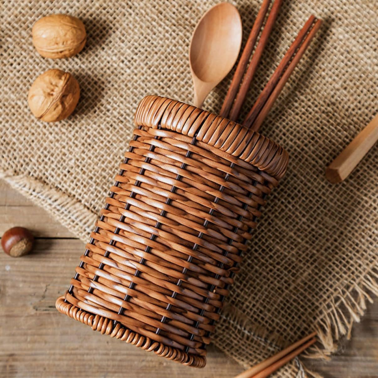 - This rattan woven chopstick holder can not only be used to store tableware, but also to store stationery, making it convenient for storage and use.
