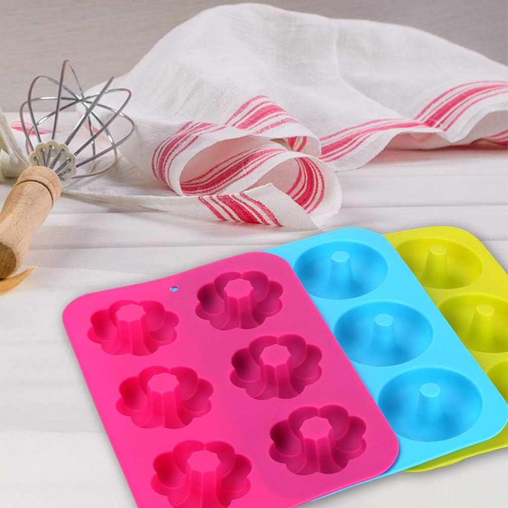 1Pc Silicone Donuts Baking Pan, Non-stick Round and Flower Donut Molds for Cake Biscuit Bagels Muffins