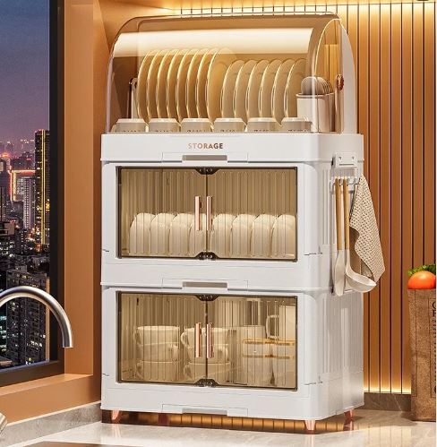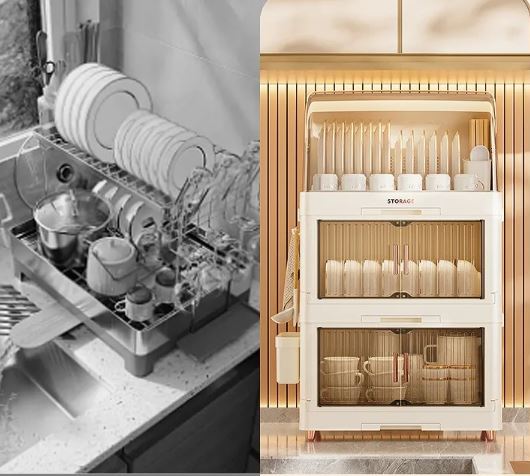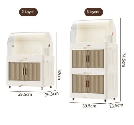 - Multi-Layer Design: Upper rack for plates, middle shelf for bowls, and lower shelf for cups and utensils.