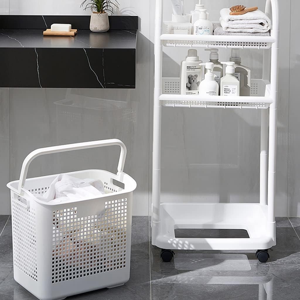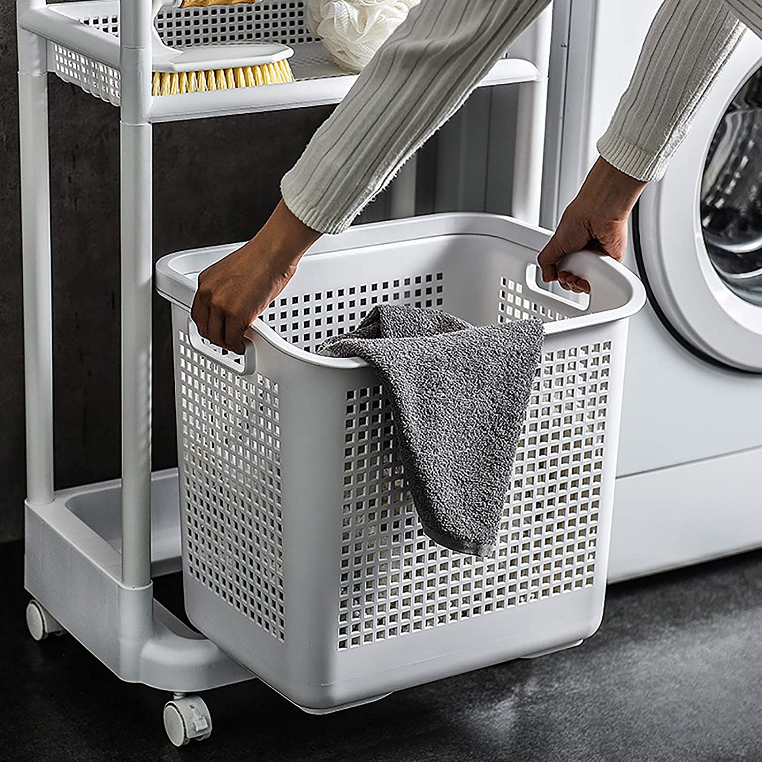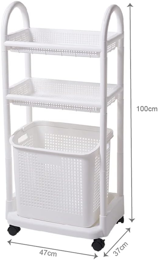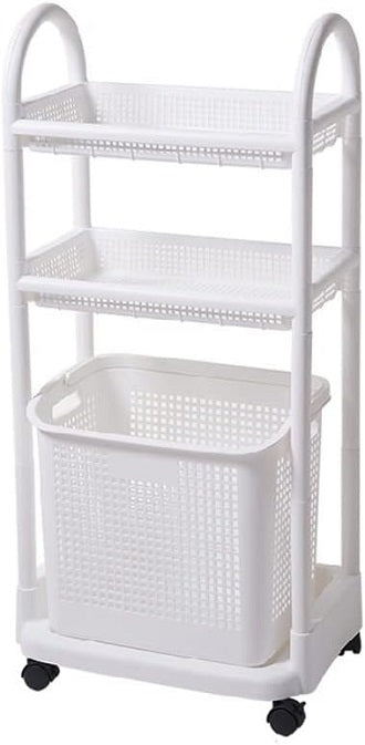 2-Tier Laundry Basket Organizer Trolley Plastic Cart Shelf Rack with Laundry Storage Basket Perfect for Kitchen Bathroom Laundry