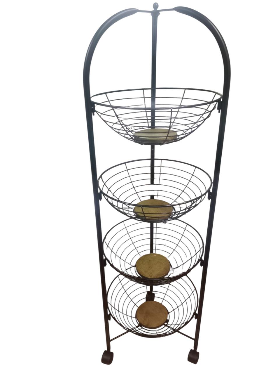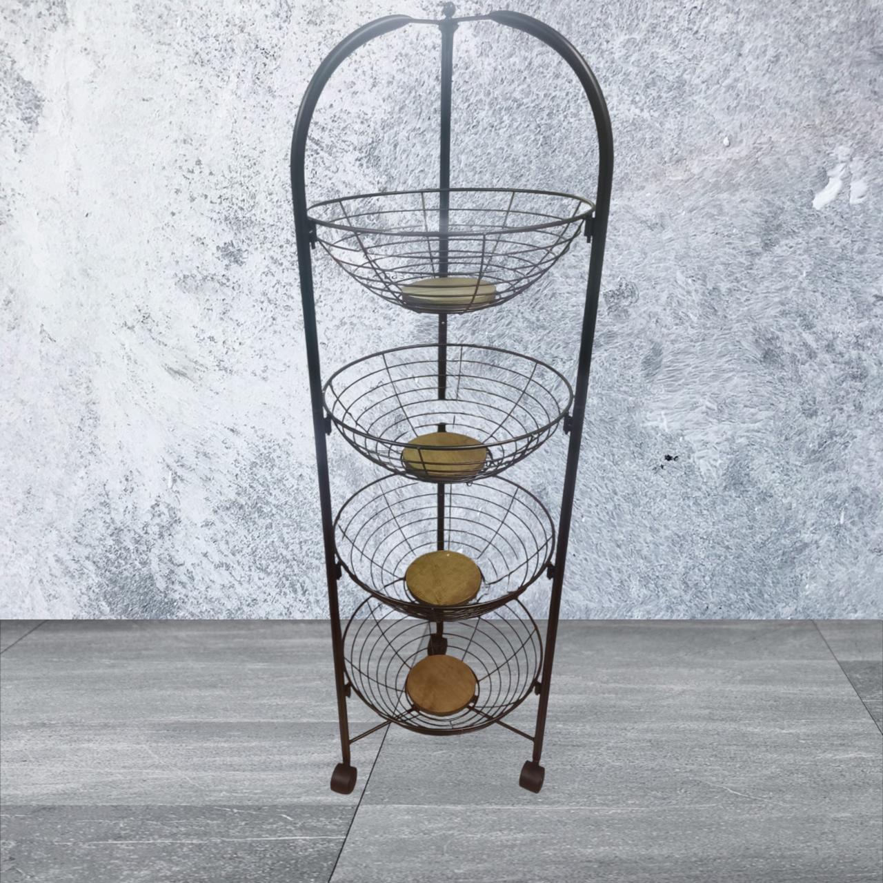 3/4 Layer Fruits and Vegetable Basket – Premium Metal Finish with Wooden Accents