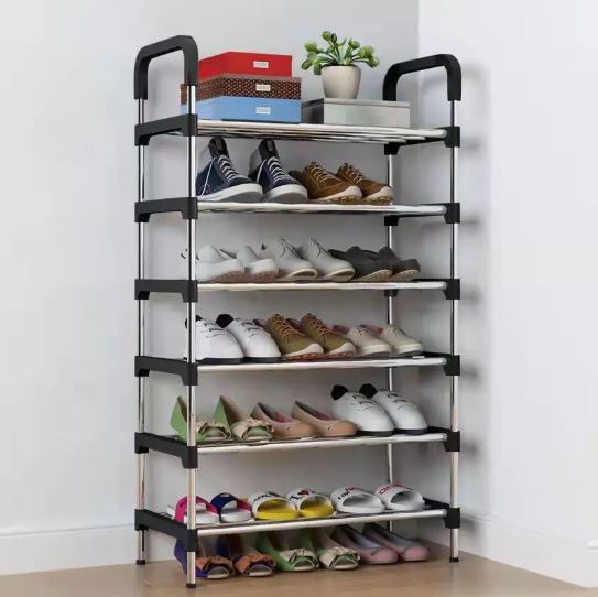 - This 6 tier shoe shelf storage can stores up to 20 pairs of shoes or some shoes boxes for men, women and children such as flats, sandals, sneakers, slippers and so on. The top tier can fit some tall boots, high heels, high-top sneakers.