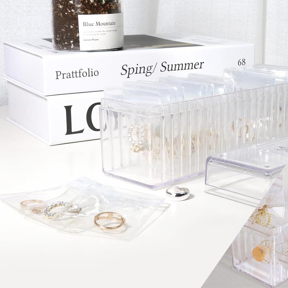 - The included 20 portable PVC jewelry bag are designed for durability and convenience. Their thick, transparent material resists tearing and securely seals to prevent jewelry from oxidizing.