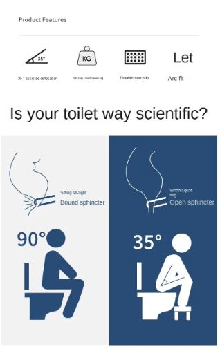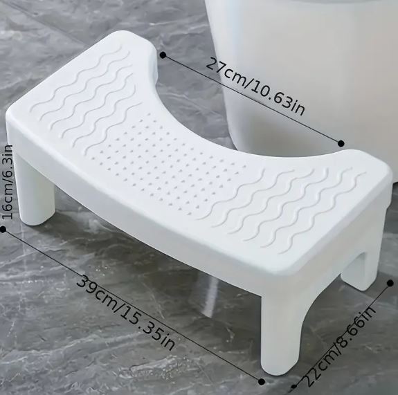 - Experience the squating power with our toilet stool. Simply place your foot on the poop stool to fully relax the embarrasic rectal muscles and allow you to empty the colon quickly and thoroughly and help reduce constipation effectively.