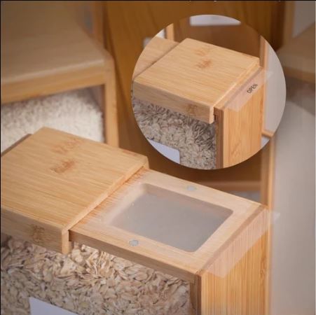 - Efficiently organize your pantry with our BAMBOO GRAIN STORAGE BOX.