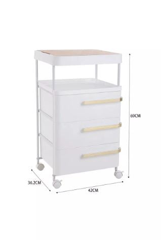 - The compact unit making it perfect for small bedrooms and it is easy to use with narrow bedside spaces. Three storage drawers within easy reach are great for everyday bedside storage.