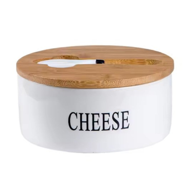 Cheese Sealing Box Ceramic Butter Plate Cheese Storage Tray Container Box + Lid and Knives Set