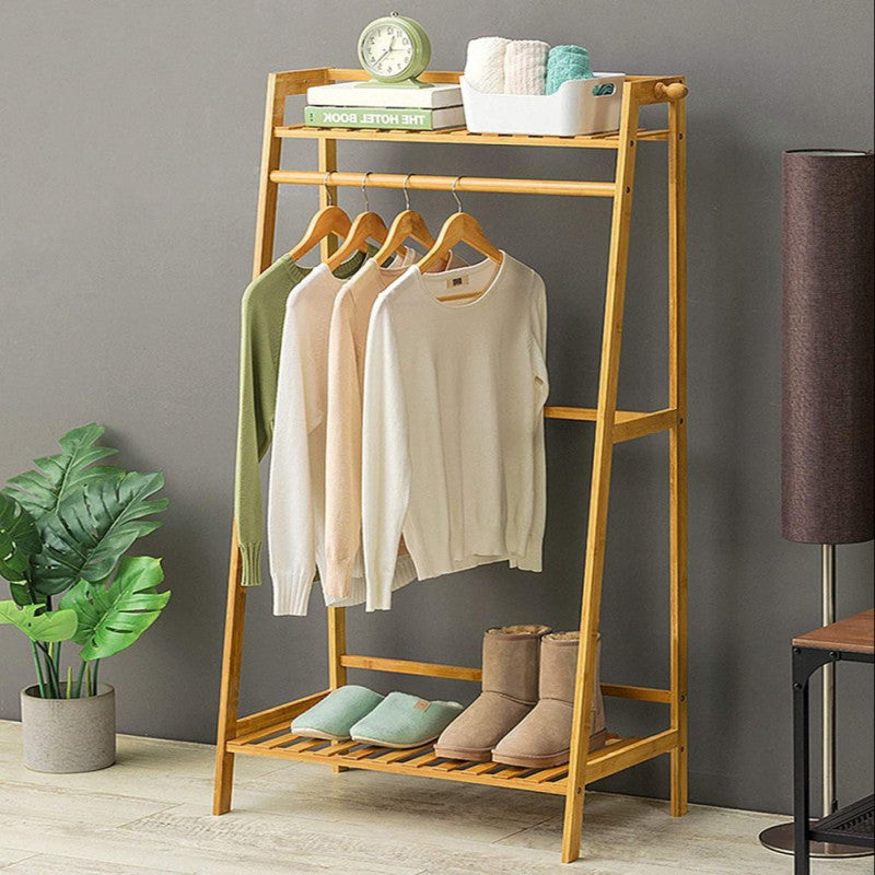 Coat Rack Hanger Clothes Rack Bamboo Wood Coat Hooks 2-Tier Coat Hooks Hat Bag Hanger Hanger Stand