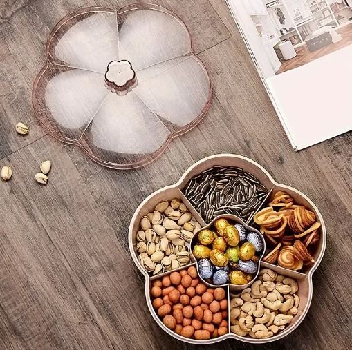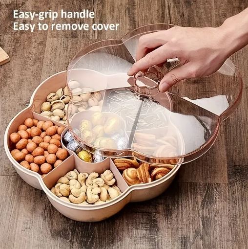 Flower Shape Snack Traay With Lid for Nut Candy Dried Fruit