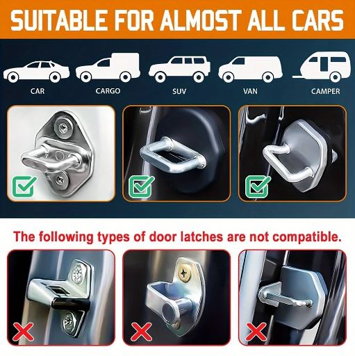 - It has a U-shaped structure, which is suitable for all kinds of car door latches, compatible with the front and rear doors of all vehicles, and is perfect for door frames with different gradients.