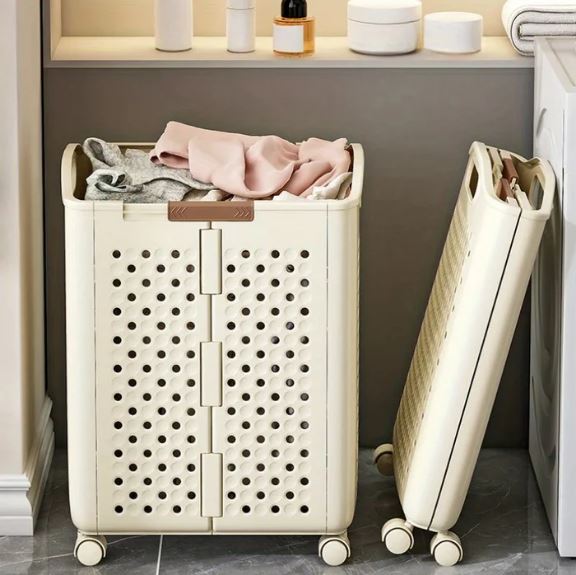 Foldable Household Laundry Basket With Wheels, Large Capacity Laundry Hamper