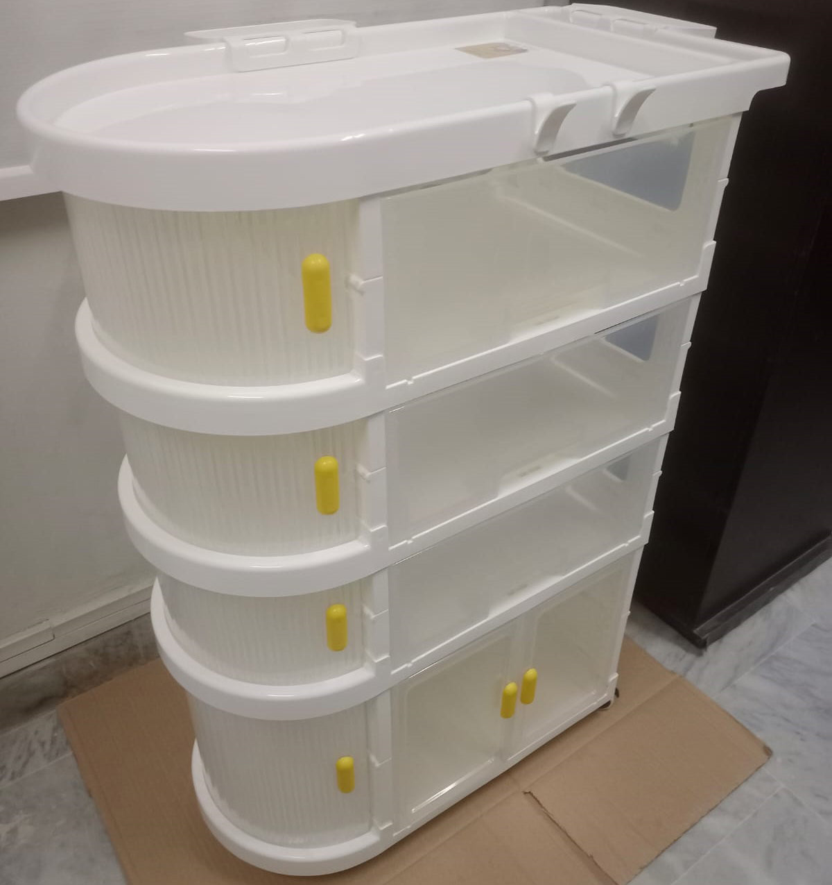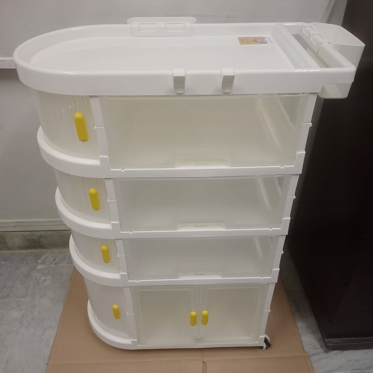 - With our versatile storage cart, which now features multiple compartments, drawers, and cabinet doors. Customize it to your needs, whether it's snacks, toys or baby essentials.