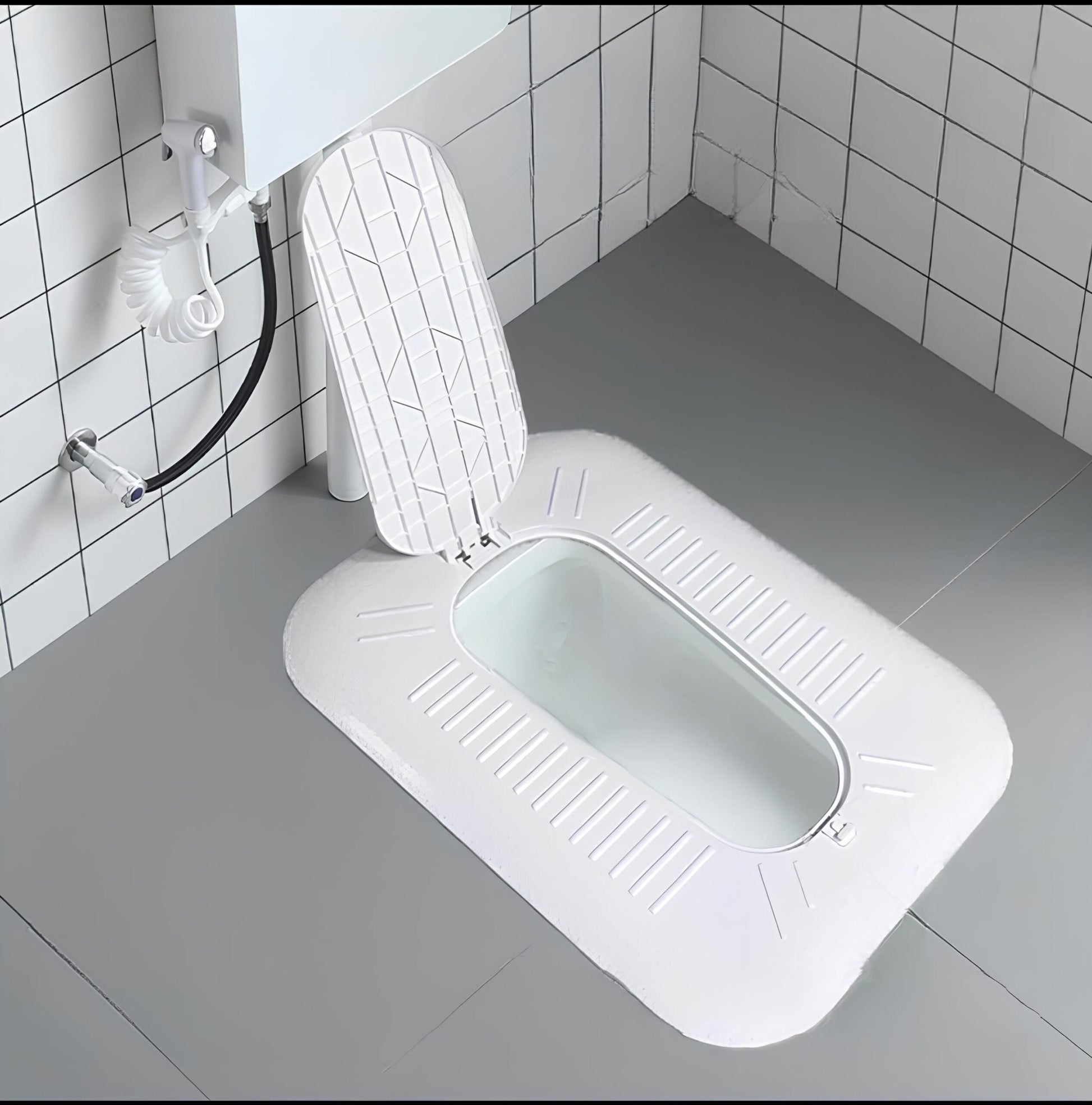 Fully Enclosed Squat Toilet Cover with Foot Step – Odor Stopper and Open Cover Design