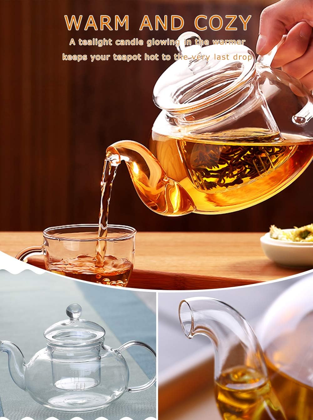 Glass Teapot with Glass Infuser, Stovetop Safe Tea Kettle, Blooming and Loose Leaf Tea Maker