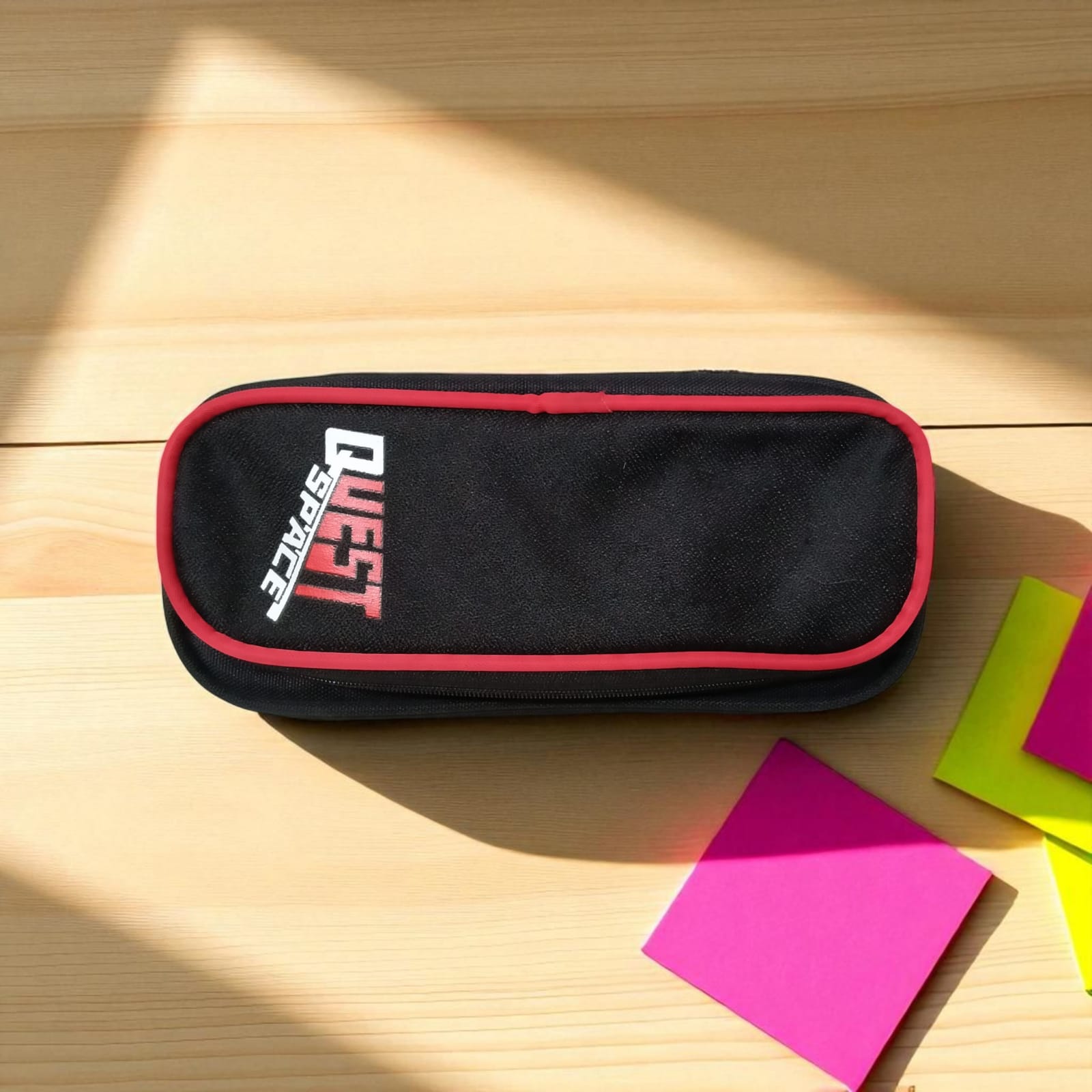 - 3 compartments pencil pouch. First compartment has stores 6 pen pencils.