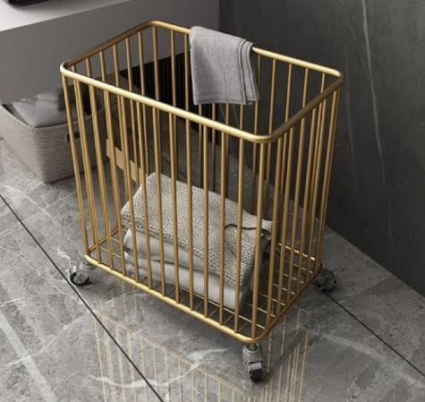 Laundry Organizer - Rust Proof Modern Iron Laundry Basket With Rollers