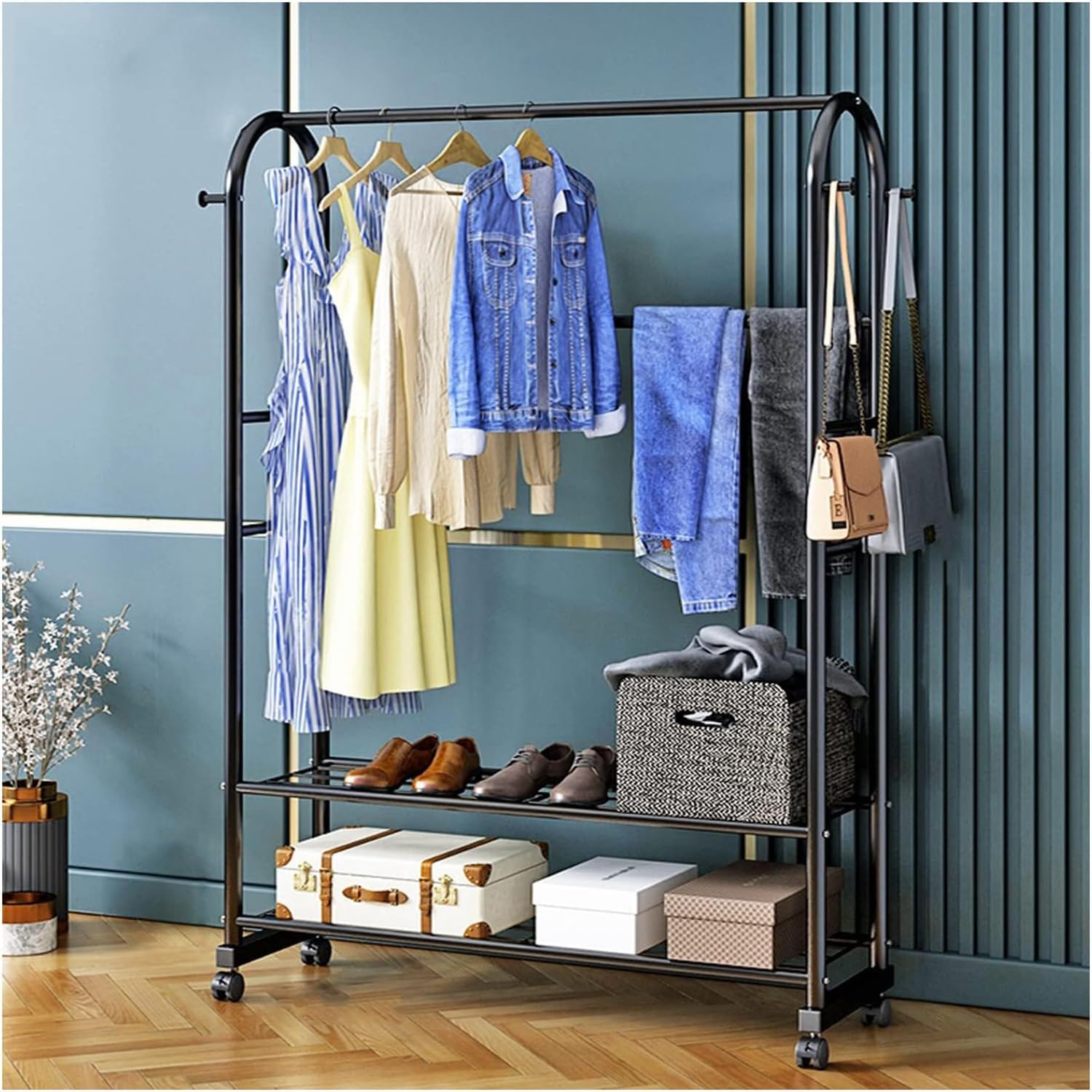 - Rail Design: Its long clothes rail can hold your shirts, coats and other long clothes. Its short clothes rail keeps your pants in place. There are 2 shelves at the bottom to store shoes, bags, hats and other items.