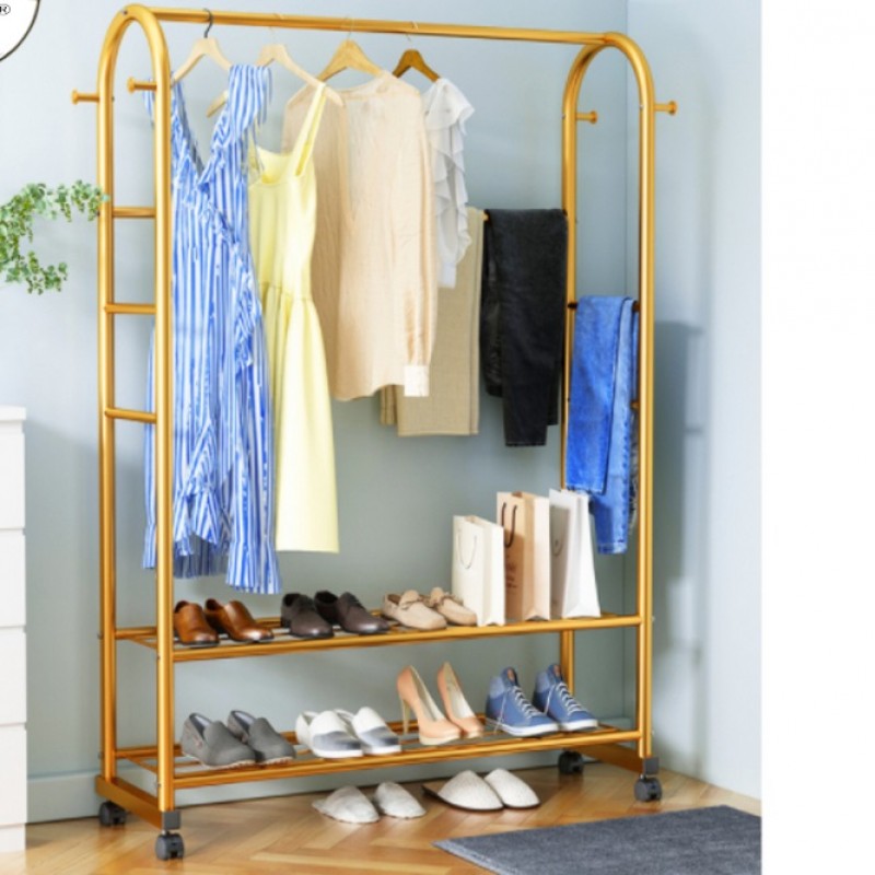 Luxury Floor Clothes Drying Rack Household Coat Rack Bedroom Simple Clothing Stand Hanger Fashion Porch Wardrobe Coat Shoe Shelf