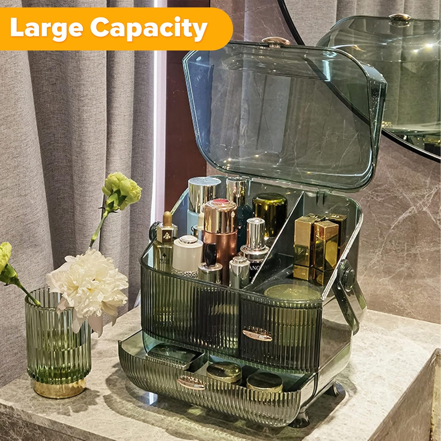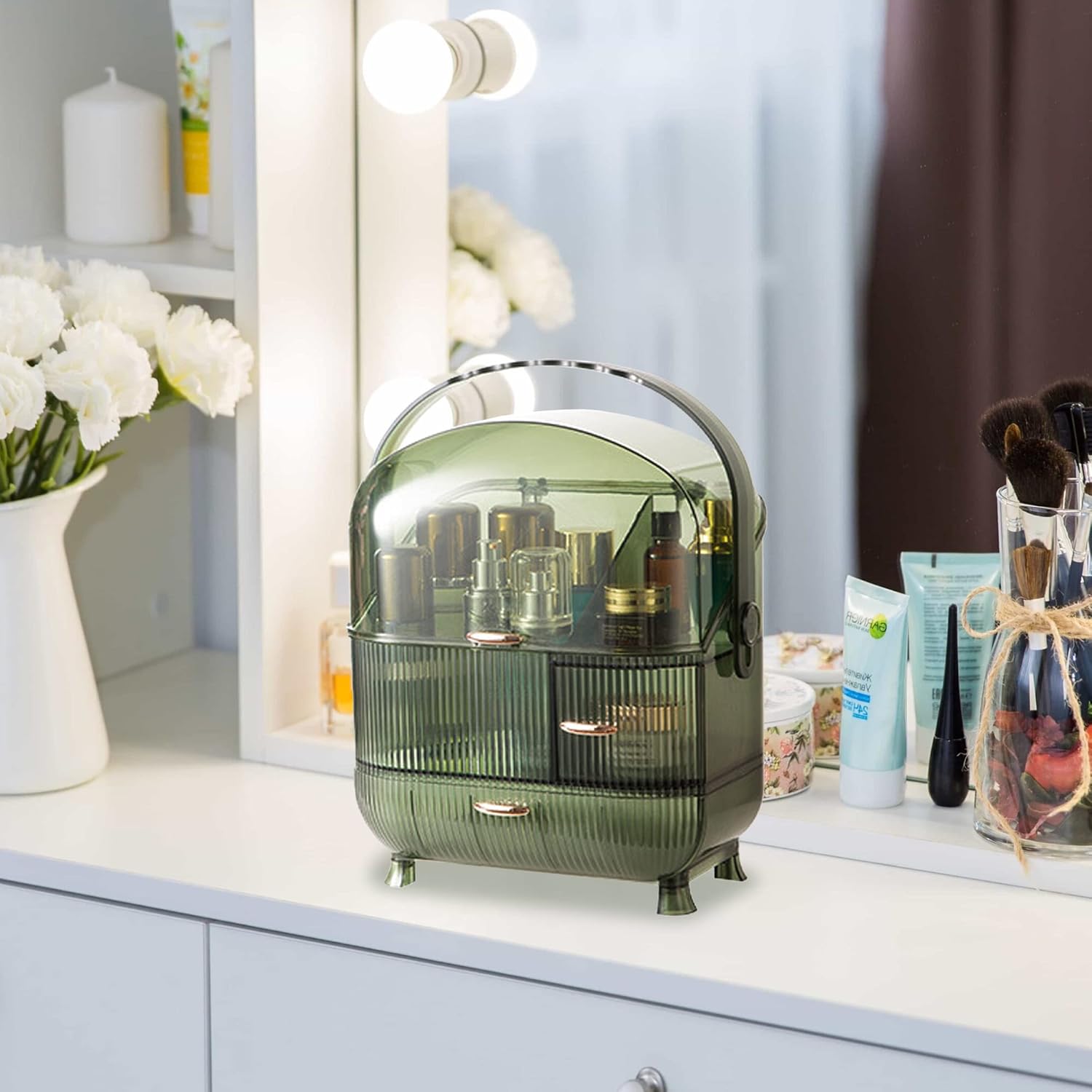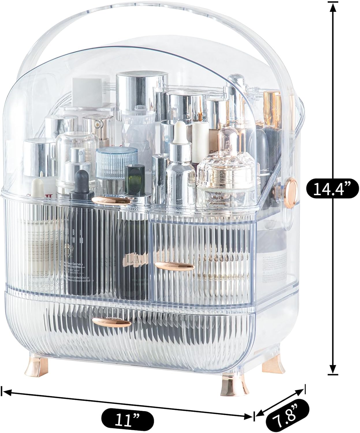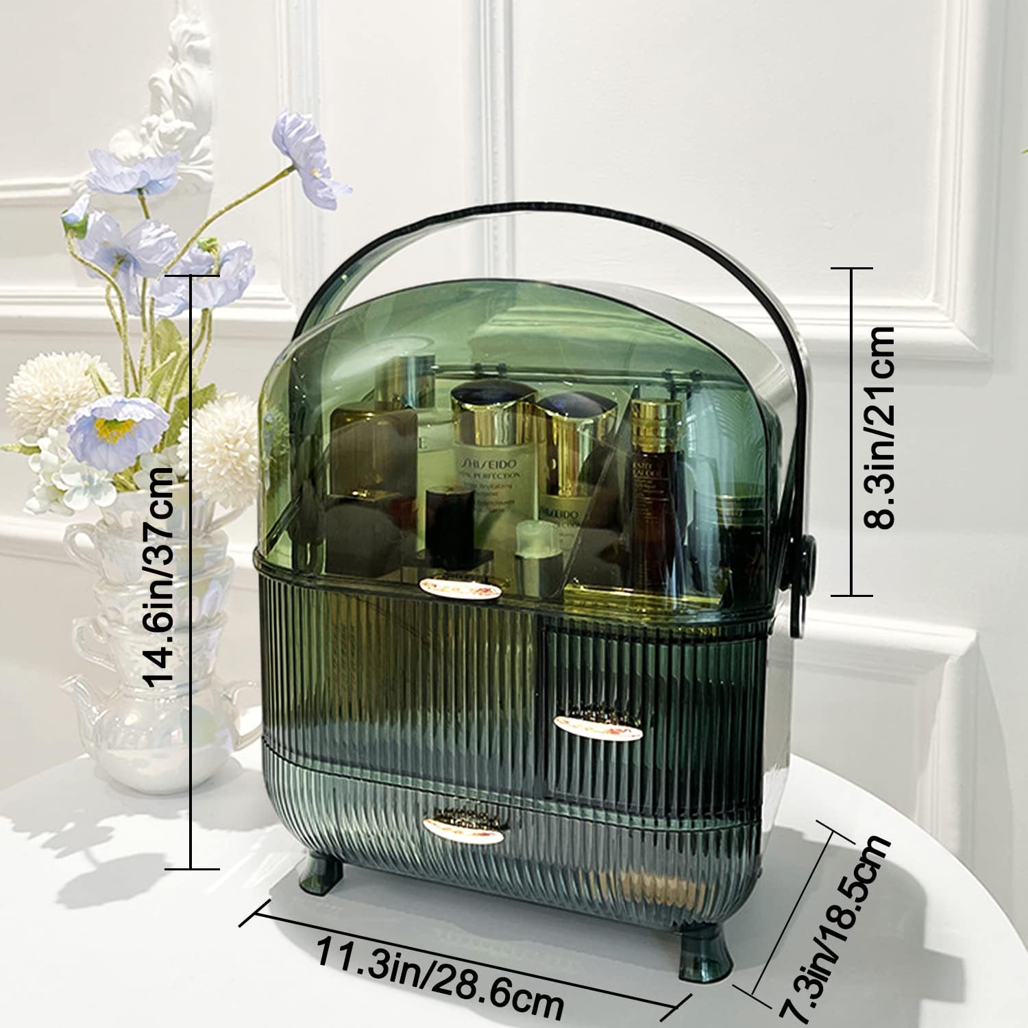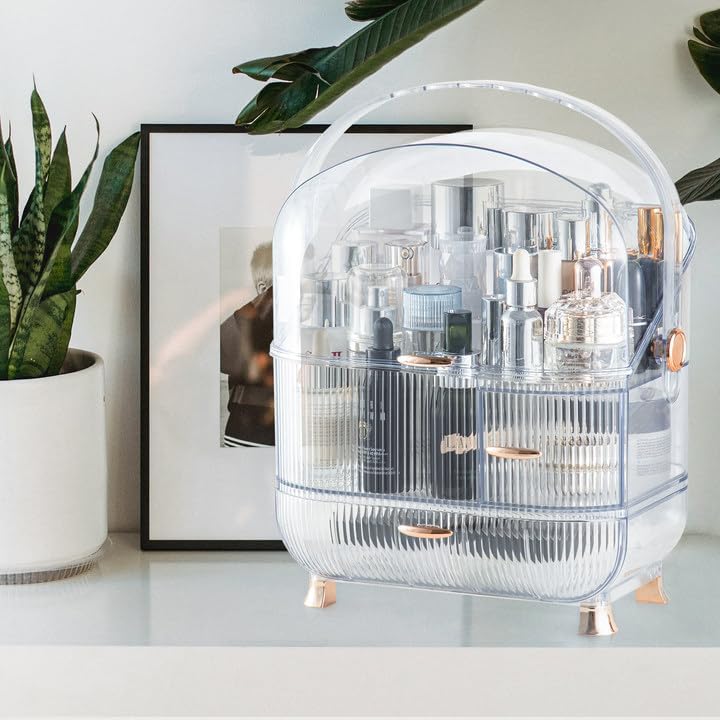 - 【Bathroom Application】Makeup and skin care in the vanity or the bathroom?Portable handle for quick change of makeup space,Designed with a lid to keep the interior clean and dry even on damp bathroom counter tops.