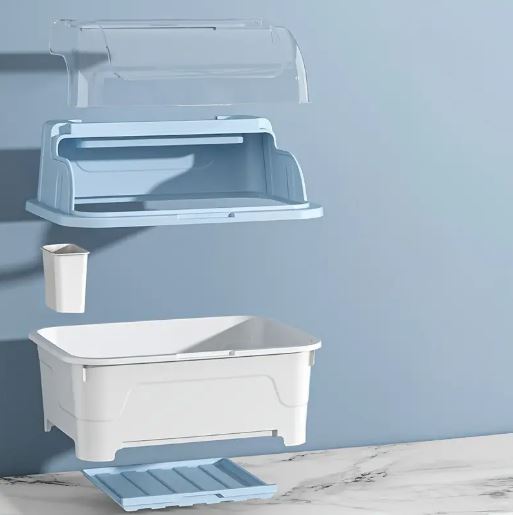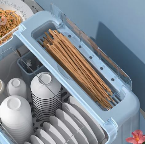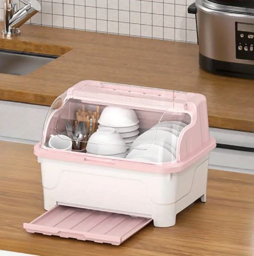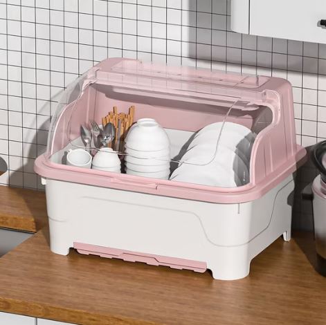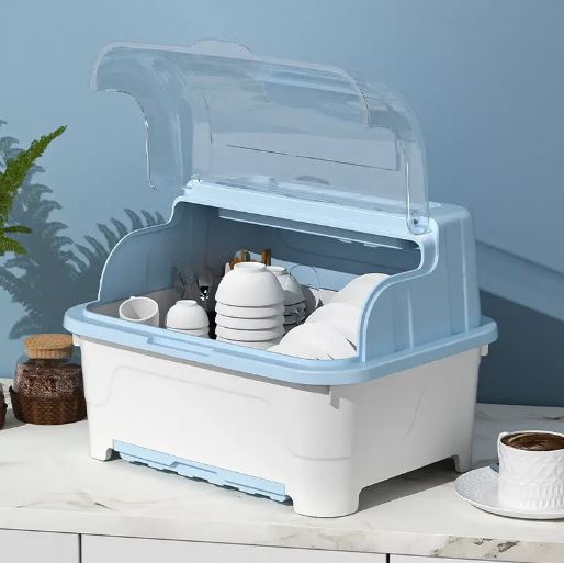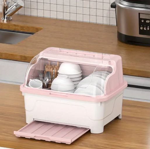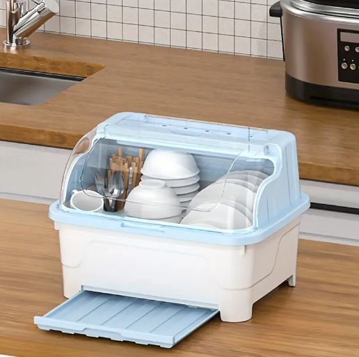Multi-functional Plastic Kitchen Dish Storage Box with Lid, Dustproof Large Capacity Kitchen Rack