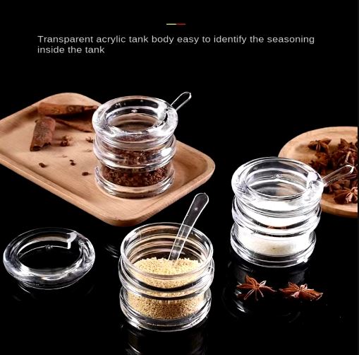Multifunctional Clear Acrylic Spice Jar Dustproof with Spoon Sugar Bowl Non-slip Spice Box