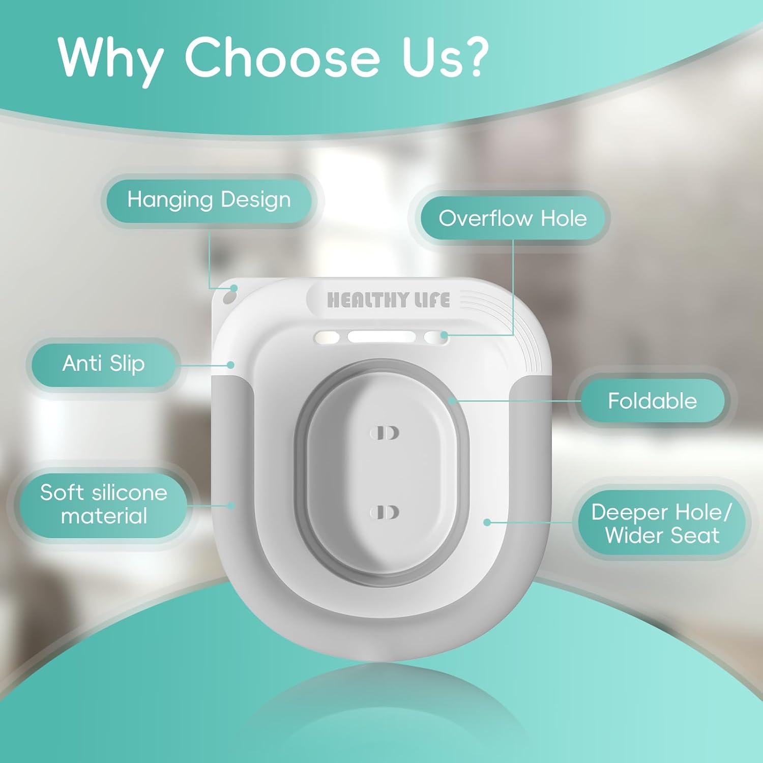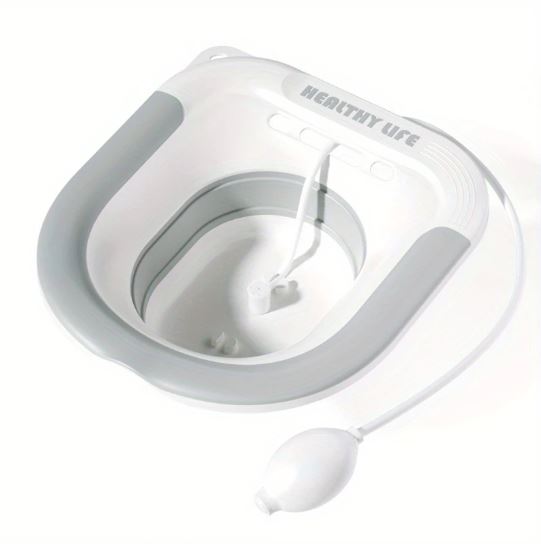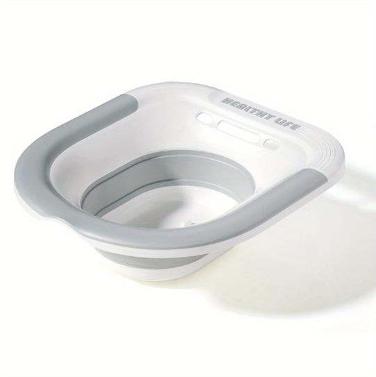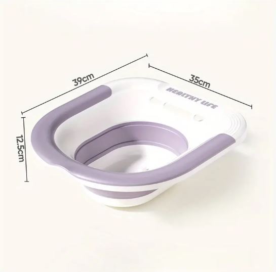 - [FOLDABLE STORAGE] : The portable sitz bath can be folded to an ultra-thin height of 2.36 inches, with a hanging hole design, you can hang the sitz bath on the wall to dry quickly, and save more bathroom space; The sitz bath tub has an overflow hole for easy cleaning, and spills can be drained directly into the toilet to avoid splashing on the floor