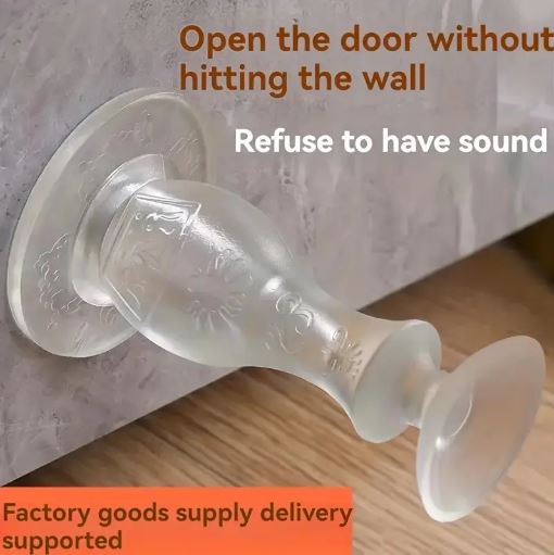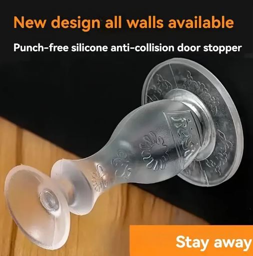 (Pack of 2) Wall-Mounted, Soundproof & Damage-Free, No-Drill Silent Door Stopper with Rubber Base