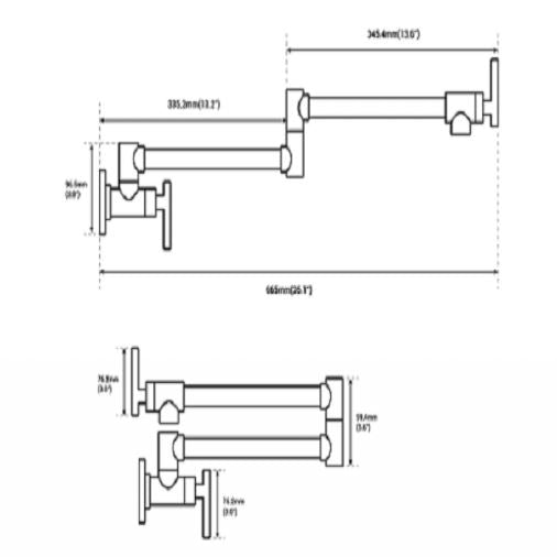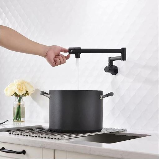 - 23.5 in. dual swing joints allow the pot filler to easily fold away when not in use