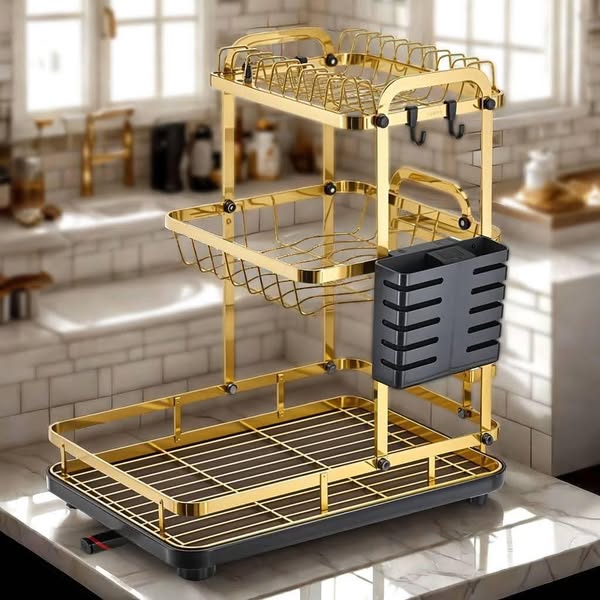 - With 3 level, this dish rack provides ample space for drying various kitchen items, including plates, bowls, glasses, and utensils. It optimizes your countertop space and enhances kitchen organization.