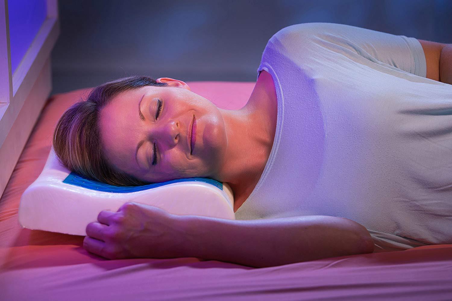 - Refreshing pillow made from viscoelastic foam and gel. 3D textured gel surface 100 % breathable. Eliminates moisture and sweat.