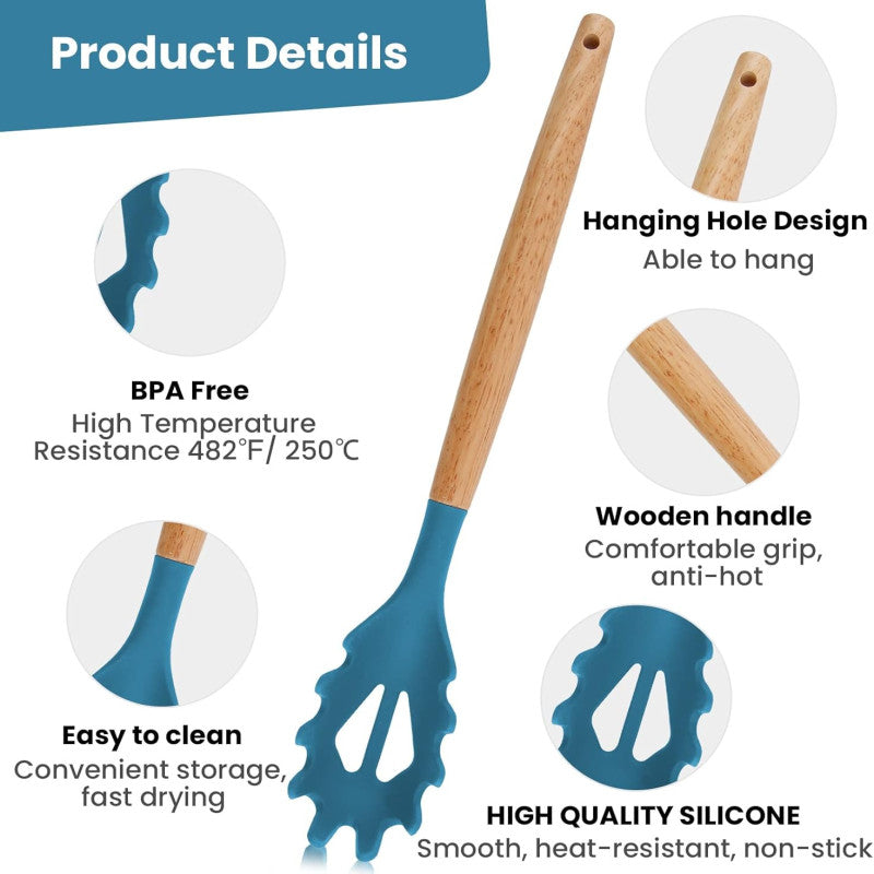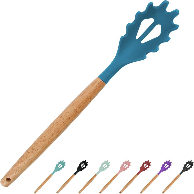 Silicone Noodle And Pasta Spoon With Wooden Handle