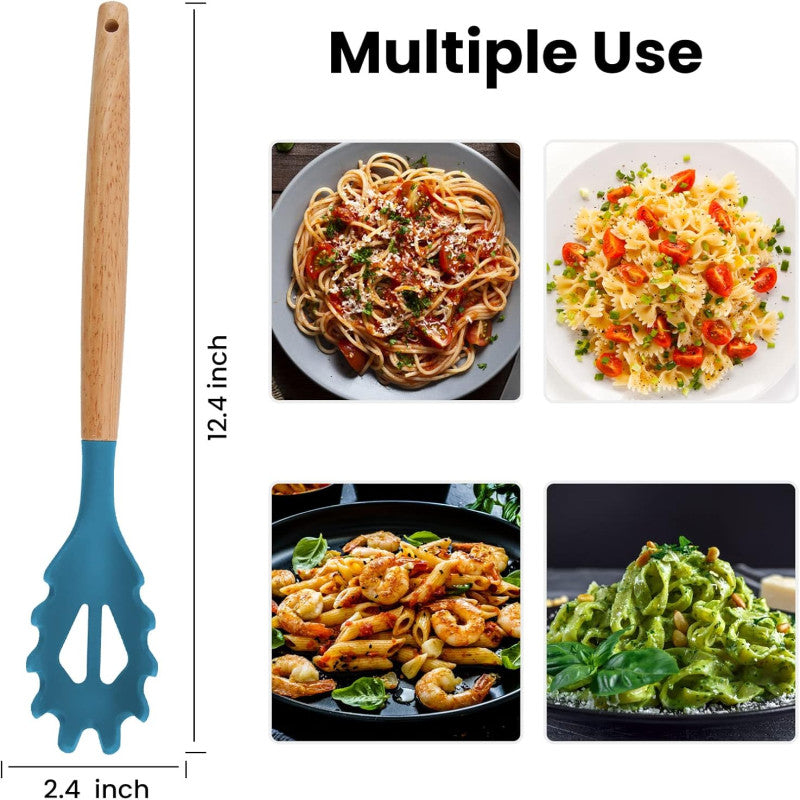 - The silicone material is non-stick, allowing you to effortlessly scoop and serve noodles and pasta without any sticking or clumping.