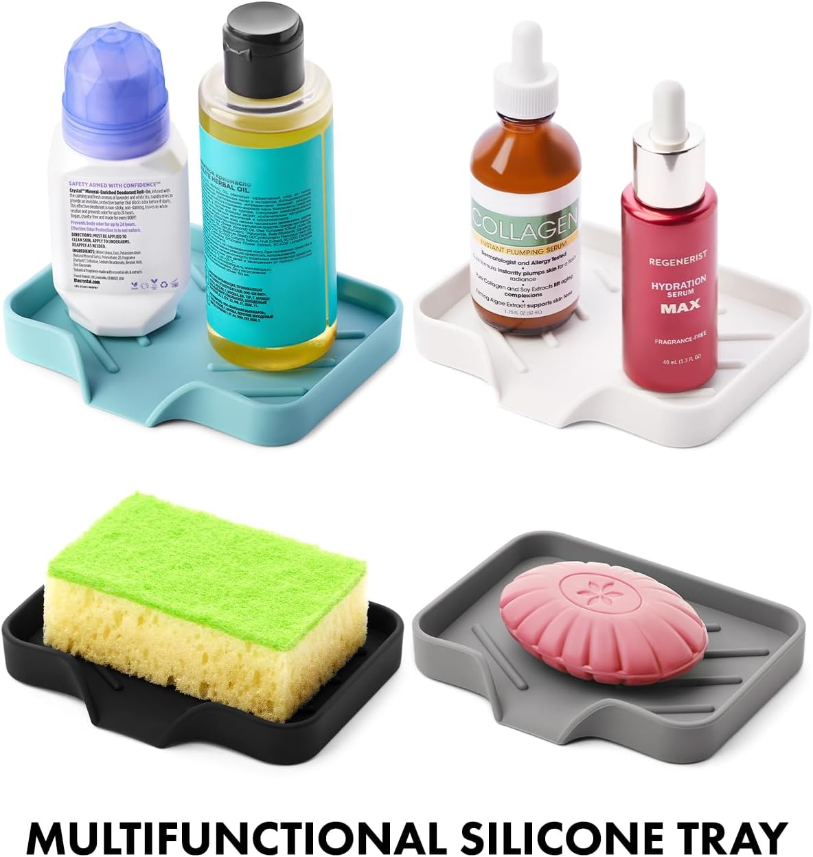 - This silicone soap dish requires no drilling, making it effortless to install in any kitchen. Its multi-functional design also doubles as a sponge storage tray.
