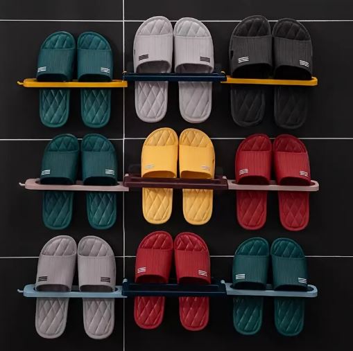 - Unique folding design makes this slippers rack convenient and easy to take full advantage of every piece of space, such in a corner or back of door.