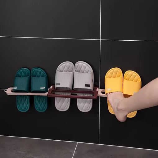 Space-Saving Wall-Mounted Folding Shoe Rack - Durable Plastic, Ideal for Bathroom Storage