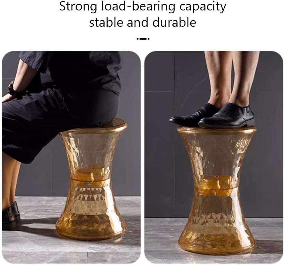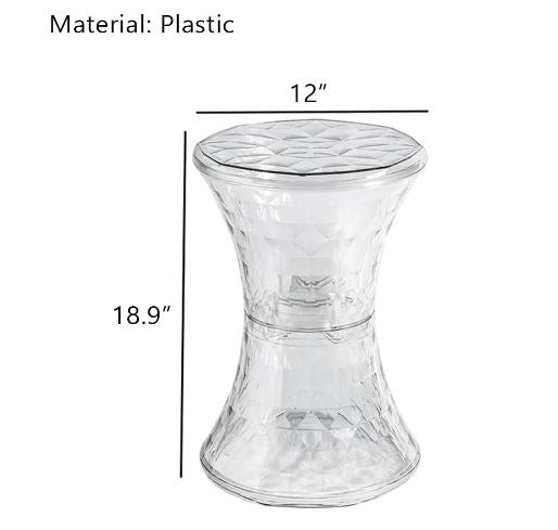 - This hourglass shaped stool is made of high quality clear acrylic, durable, scratch-resistant, waterproof and won't warp.