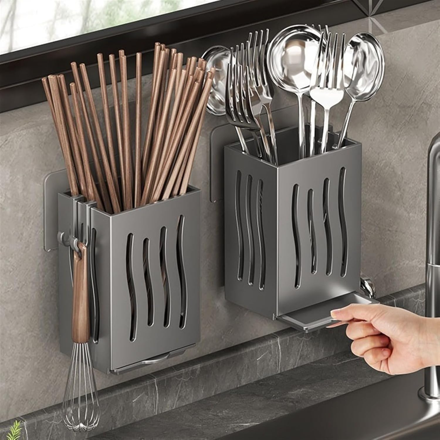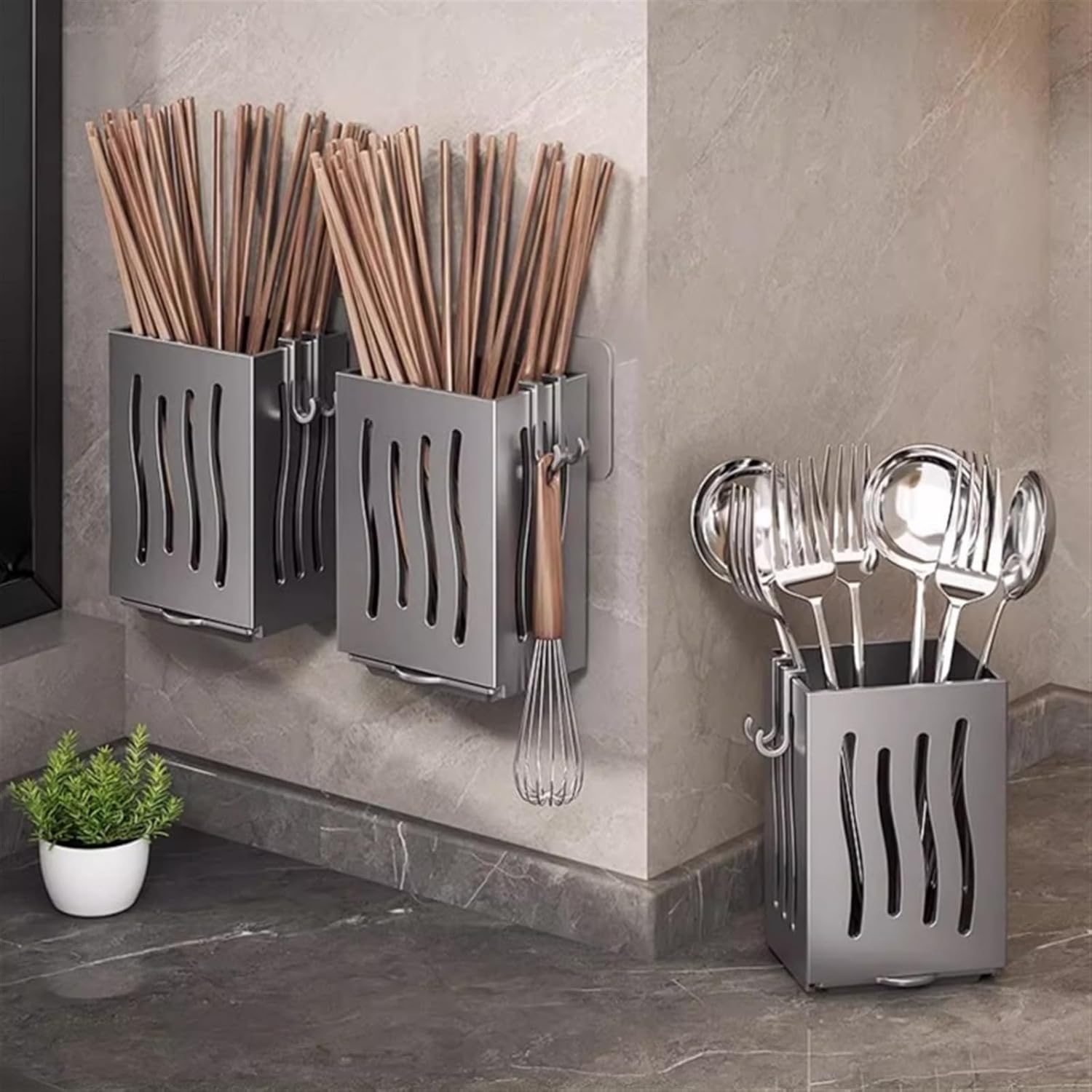 Wall-Mounted Cutlery Racks Plastic Storage Box Chopstick Knives Draining Hooks Multifunctional Organizer